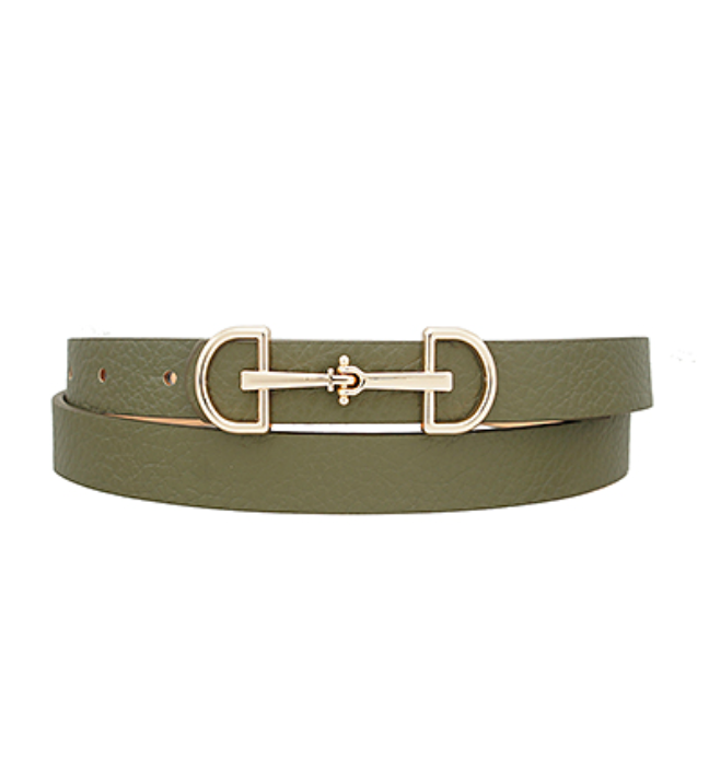 Elevate your outfit with the Horse-bit Buckle Skinny Belt, designed to add a refined touch to any look. Its sleek, slender profile complements both casual and dressy styles, while the distinctive horse-bit buckle brings timeless elegance and a hint of equestrian charm. Crafted for a comfortable fit and lasting style, this belt is the perfect accessory to define your waist and enhance your wardrobe effortlessly.