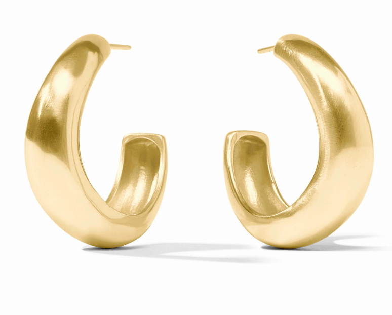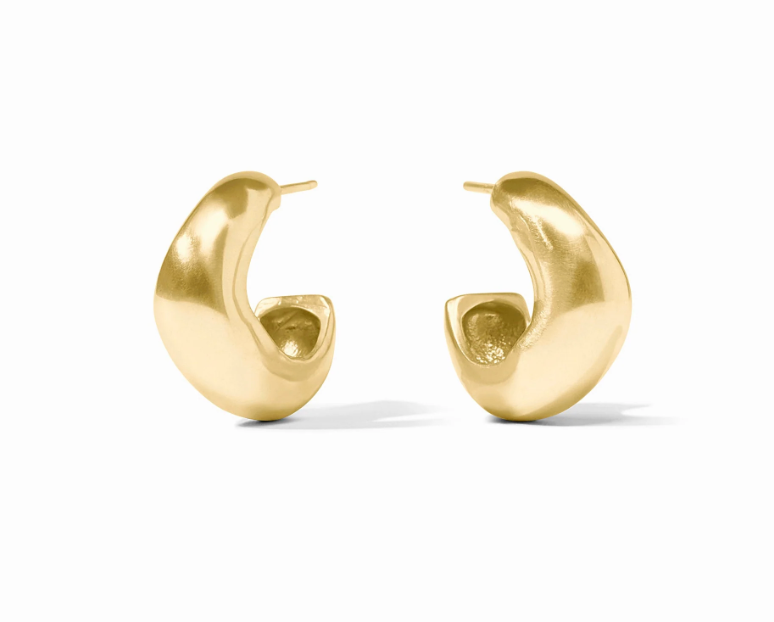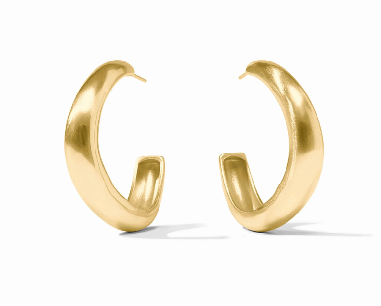 Indulge in timeless elegance with the Julie Vos Madison Hoop earrings. Crafted from hand-hammered 24K gold plate, these hoops softly shimmer in the light. Available in small, medium, and large sizes, and complete with post for pierced ears and 24K gold plated earring backs. Elevate your look with the Julie Vos hallmark.