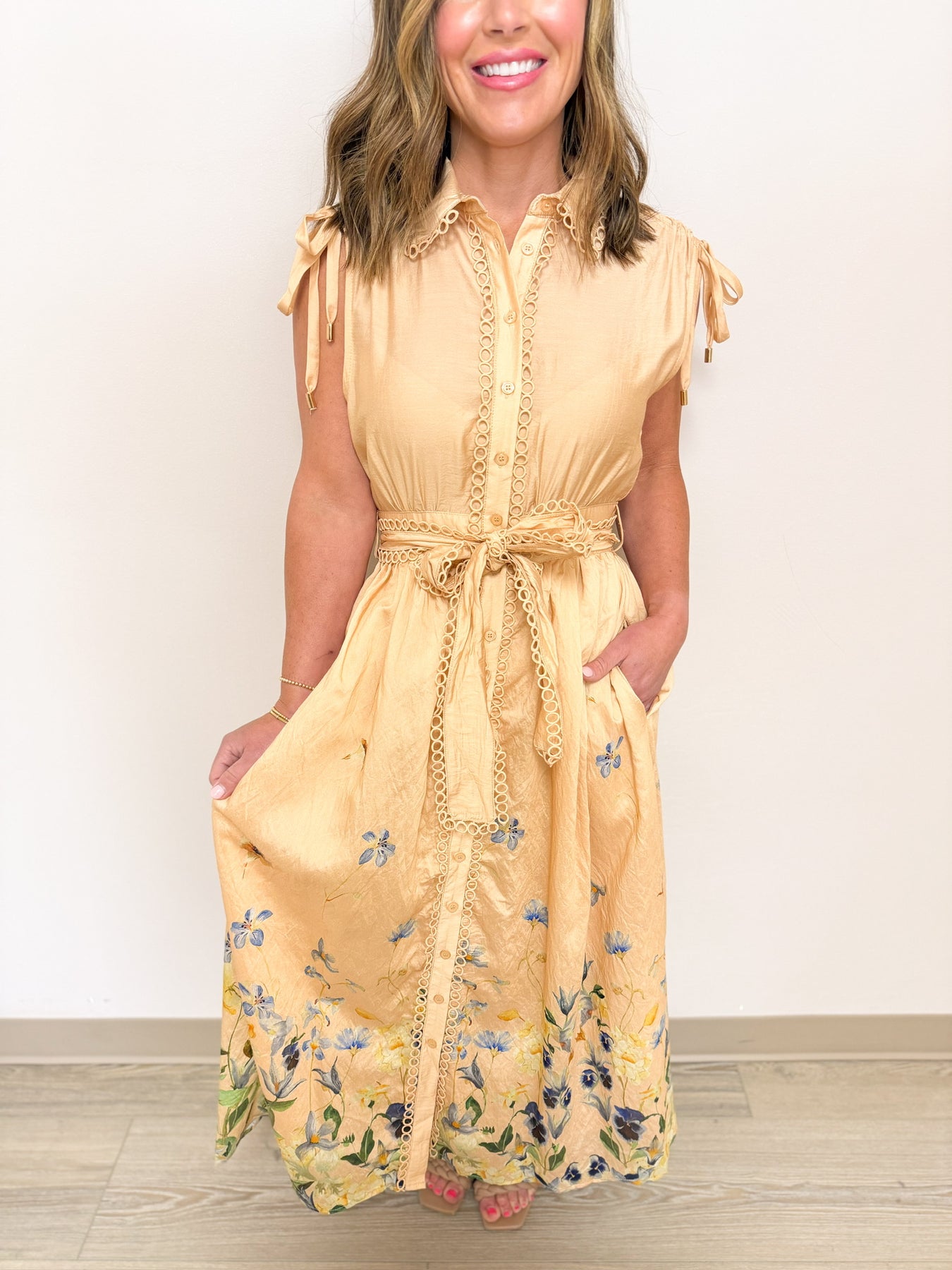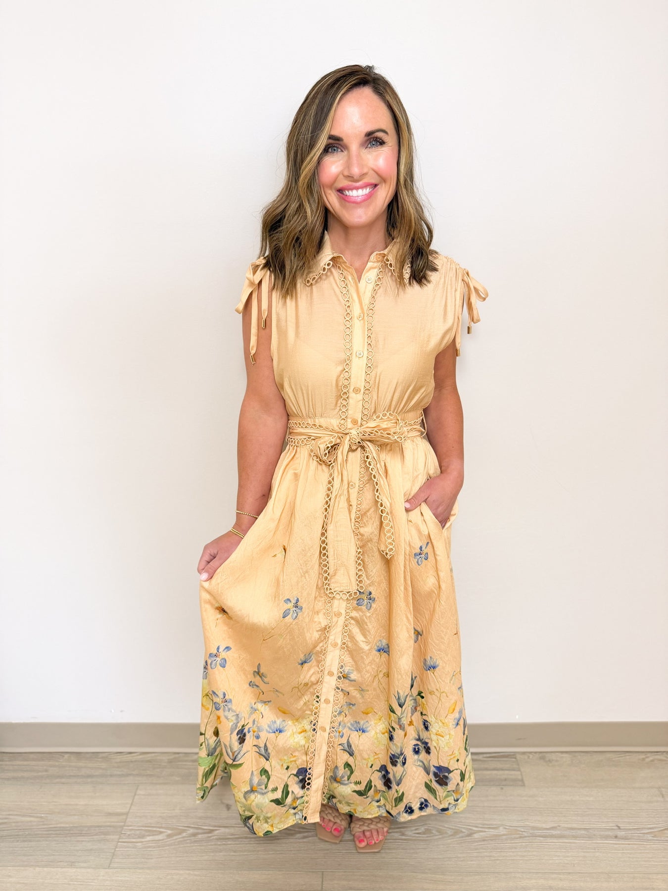 Effortless elegance meets everyday comfort in this V-neck collared midi dress. Featuring a classic front button closure and flattering ruched waist detail, this short-sleeve style offers a polished silhouette perfect for work, brunch, or casual outings. The rich olive green hue is versatile and timeless, pairing beautifully with sneakers, flats, or heels. A wardrobe essential that transitions seamlessly from season to season.