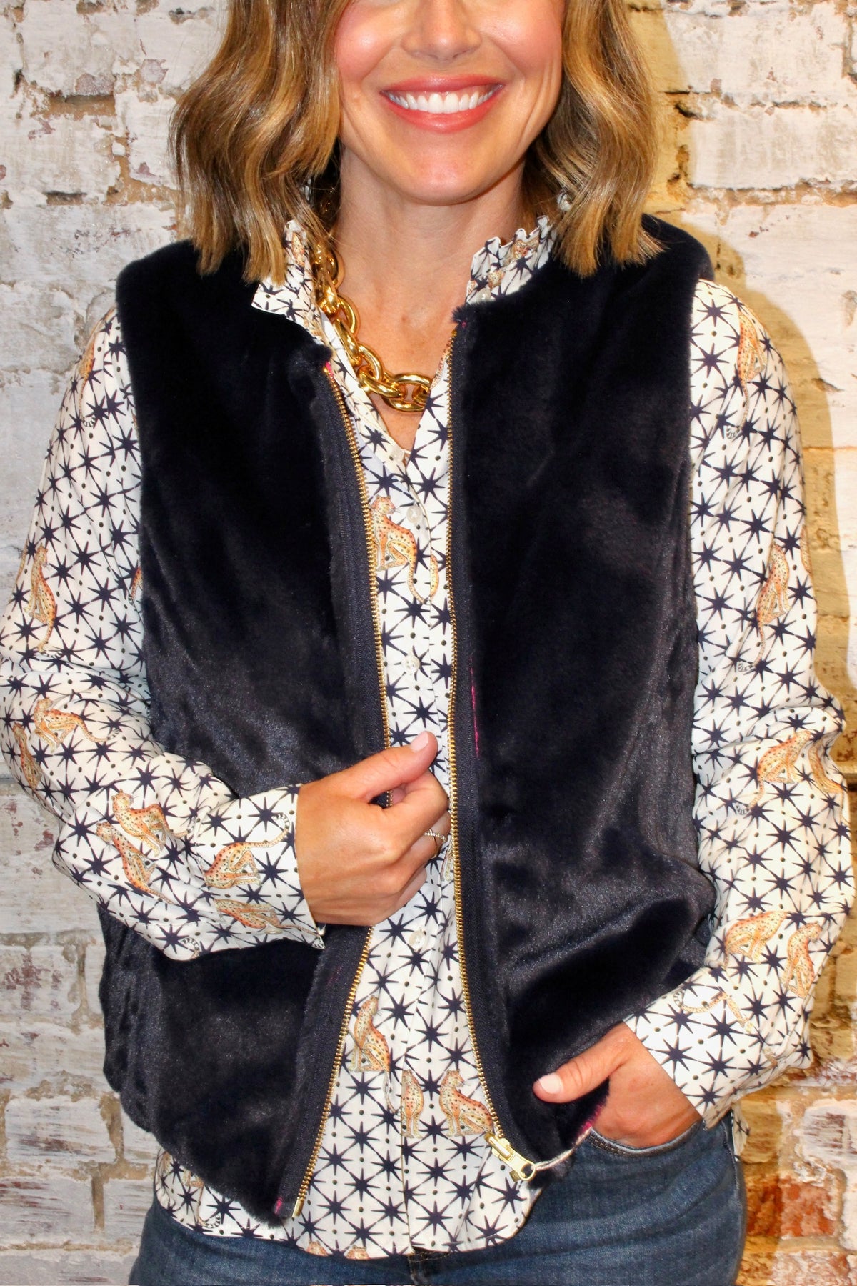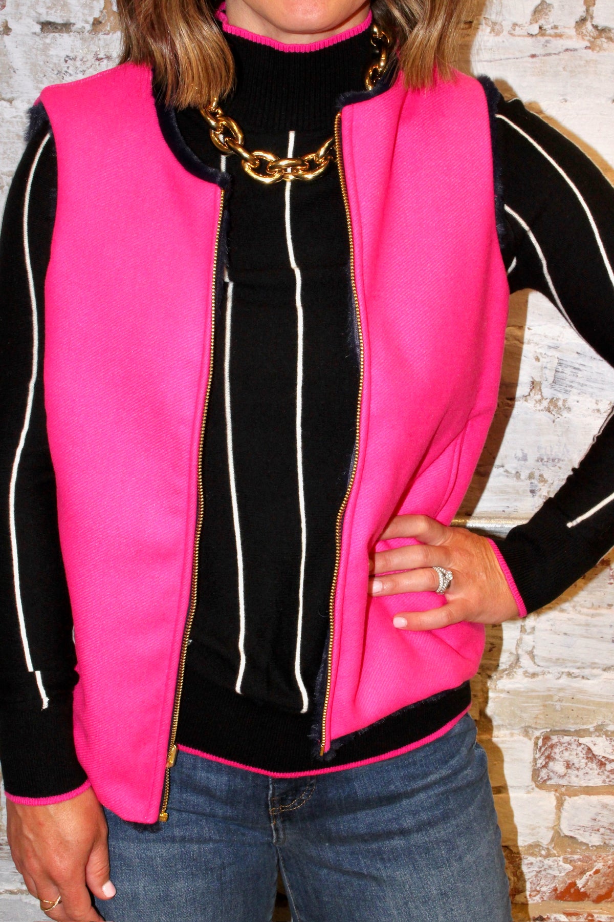 Stay stylish and cozy with the Rosa Lana Fur Faux Lined Vest. This pink vest features a luxurious navy faux fur lining that adds warmth without bulk. Perfect for layering, it blends softness and sophistication to elevate any outfit while keeping you comfortable throughout the day. A versatile piece designed to enhance your wardrobe with both color and comfort.