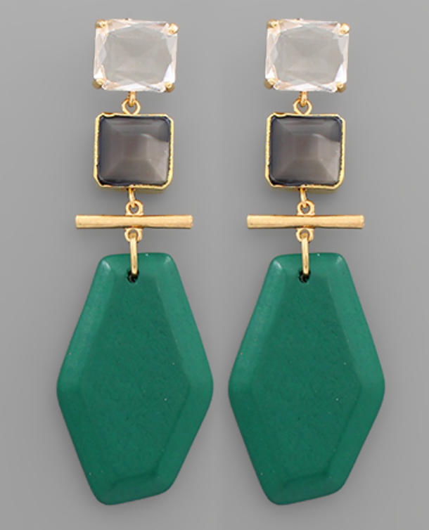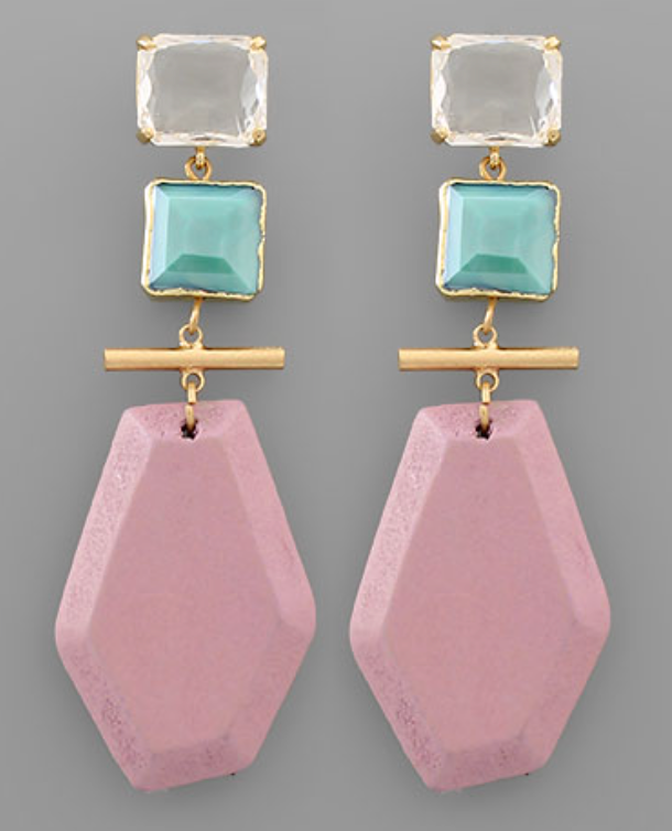 Stone & Wood Disk Earrings