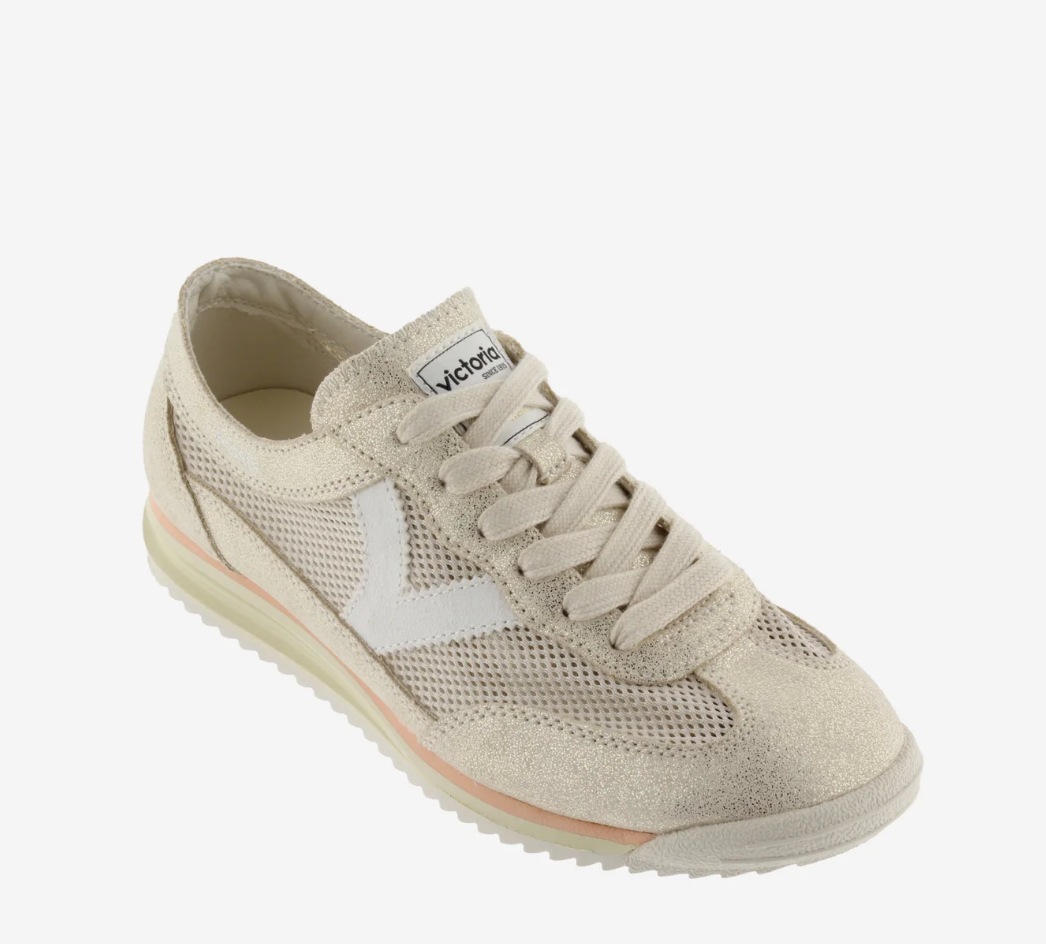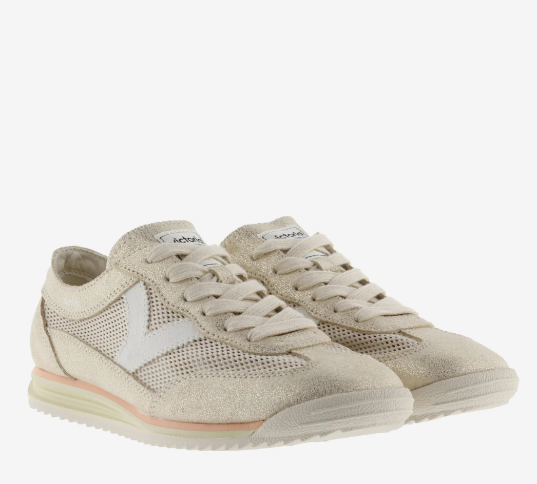 Step into effortless style with Victoria Cosmos Metal Sneakers in timeless beige. These sleek sneakers blend contemporary design with everyday comfort, featuring metallic accents that catch the light and elevate any outfit. Whether you're dressing up casual looks or keeping it relaxed, these versatile shoes transition seamlessly from day to night. The modern silhouette pairs perfectly with jeans, dresses, or athleisure wear, making them an essential addition to your footwear collection. Experience the perfect balance of sophistication and wearability.